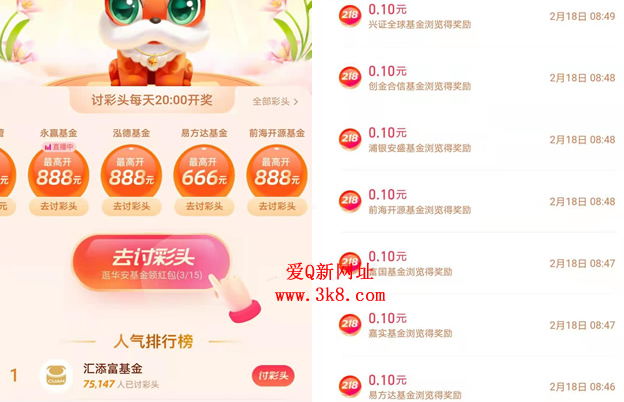 福利资源 支付宝218理财节领1.5元现金 2.23提取奖励 支付宝218理财节领1.5元现金 2.23提取奖励活动很简单,只要完成15个浏览任务就行都是小毛,兴趣的可以去参加,每天20点彩头开奖最高开出888元大奖,每个彩头都可开一次奖,2月23日提取奖励 打开支付宝App-... 自媒体优化 2021-02-18 阅读8614次